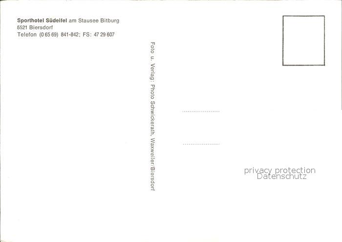 72426314 Biersdorf See Sporthotel Suedeifel Stausee Bitburg postalisch nicht gelaufen Erhaltung siehe scans KatCode: 11110007232015