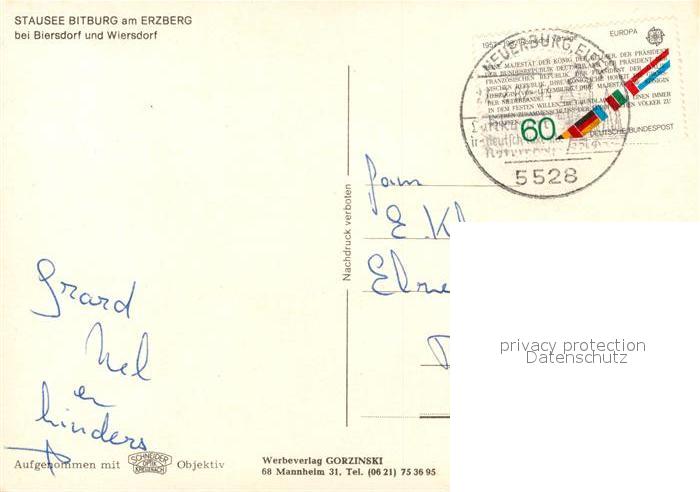 73308240 alte Postkarte Biersdorf See Stausee Bitburg am Erzberg postalisch gelaufen Erhaltung siehe scans [WerneD78] KatCode: 11110007232015