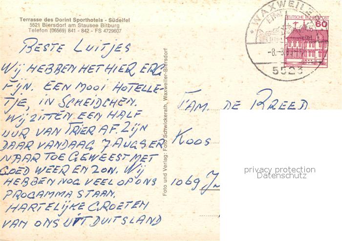 72934734 alte Postkarte Biersdorf See Terrasse Dorint Sporthotel postalisch gelaufen Erhaltung siehe scans [FriedD77] KatCode: 11110007232015