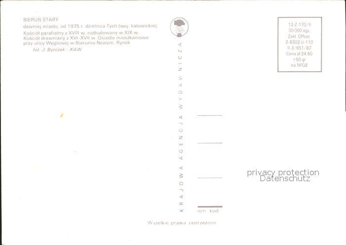 Bierun Stary Kosciol parafialny Kosciol drewniany Osiedle mieszkaniowe przy ulicy Wegloweij w Bieruniu Nowym Rynek postalisch nicht gelaufen Erhaltung siehe scans