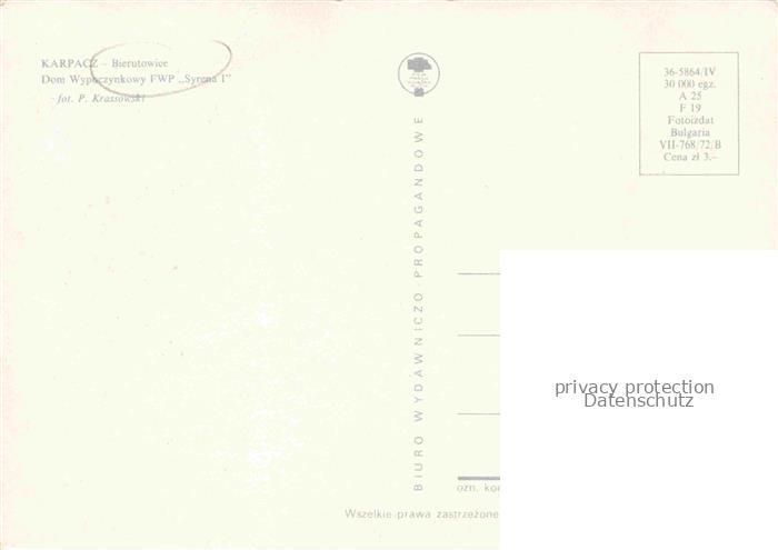 74110425 Bierutowice Karpacz PL Dom Wypocazynkowy FWP Syrena I postalisch nicht gelaufen Erhaltung siehe scans [WerneD78] KatCode: 11410