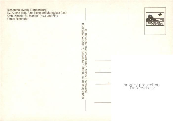 73179269 Biesenthal-Bernau Kirche Alte Eiche am Marktplatz Uferpartie am Bach Wehr postalisch nicht gelaufen Erhaltung siehe scans [FriedD77] KatCode: 11110012060024