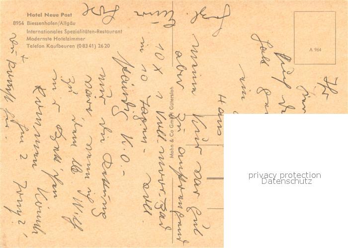 73653354 Biessenhofen Hotel Neue Post Restaurant postalisch nicht gelaufen Erhaltung siehe scans [WerneD78] KatCode: 11110009777112