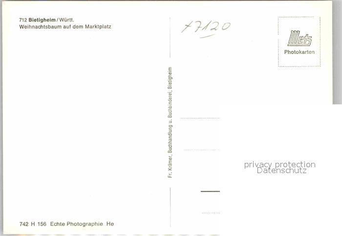 42868914 Bietigheim Baden Weinachtsbaum auf dem Marktplatz postalisch nicht gelaufen Erhaltung siehe scans [AndreD76] Andr Katcode 11110008216005