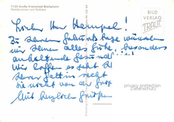 72831399 Bietigheim-Bissingen Marktbrunnen Rathaus postalisch nicht gelaufen Erhaltung siehe scans [PaolaD17] KatCode: 11110008118079
