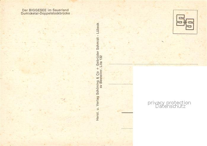 73310044 Biggesee Dumicketal Doppelstockbruecke Stausee postalisch nicht gelaufen Erhaltung siehe scans [FriedD77] KatCode: 11110005958036