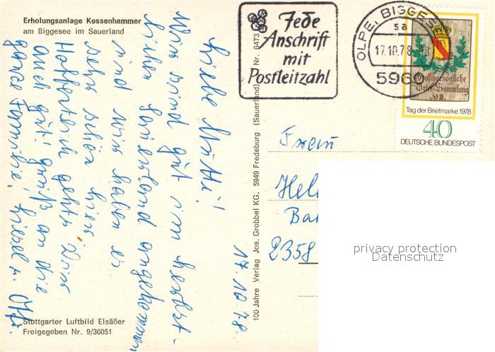 73610936 alte Postkarte Biggesee Erholungsanlage Kessenhammer Fliegeraufnahme postalisch gelaufen Erhaltung siehe scans [WerneD78] KatCode: 11110005958036