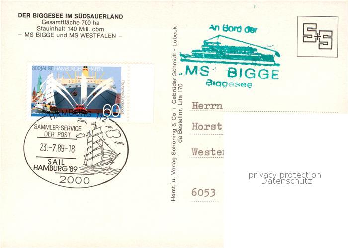 73611100 alte Postkarte Biggesee MS Bigge und MS Westfalen postalisch gelaufen Erhaltung siehe scans [LiesaD40] KatCode: 11110005958036