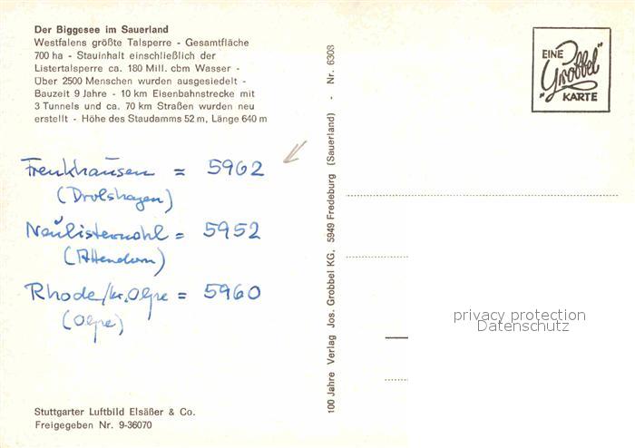 72782836 Biggesee und Umgebung Fliegeraufnahme postalisch nicht gelaufen Erhaltung siehe scans [WerneD78] KatCode: 11110005958036