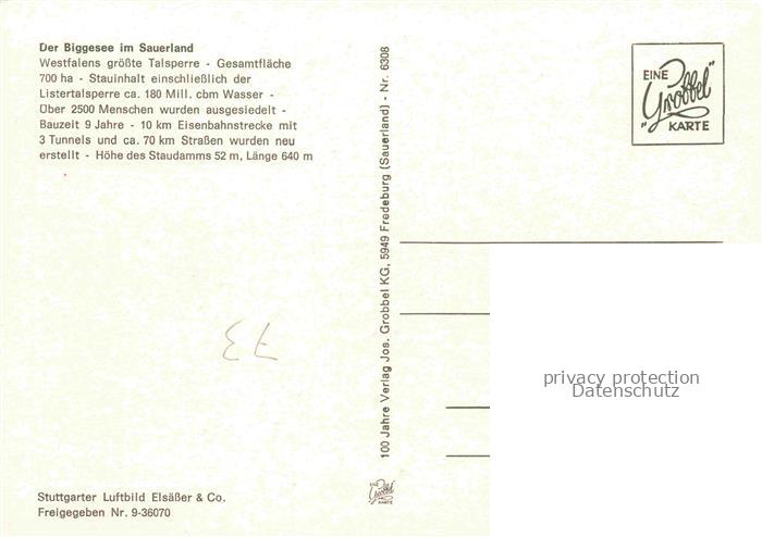 74036419 Biggesee und Umgebung postalisch nicht gelaufen Fliegeraufnahme Erhaltung siehe scans [FriedD77] KatCode: 11110005958036
