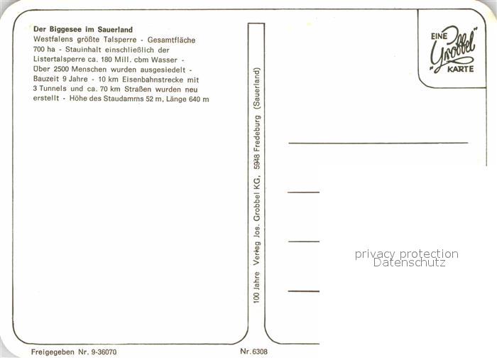 72858994 Biggesee Westfalens groesste Talsperre Fliegeraufnahme postalisch nicht gelaufen Erhaltung siehe scans [FriedD77] KatCode: 11110005958036