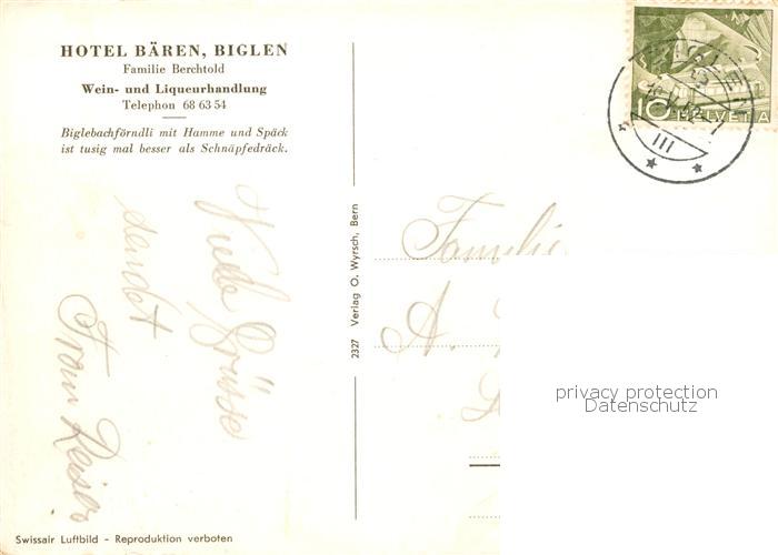 13792113 alte Postkarte Biglen BE Fliegeraufnahme Hotel Baeren postalisch gelaufen Erhaltung siehe scans [LiesaD40] KatCode: 11470060180312