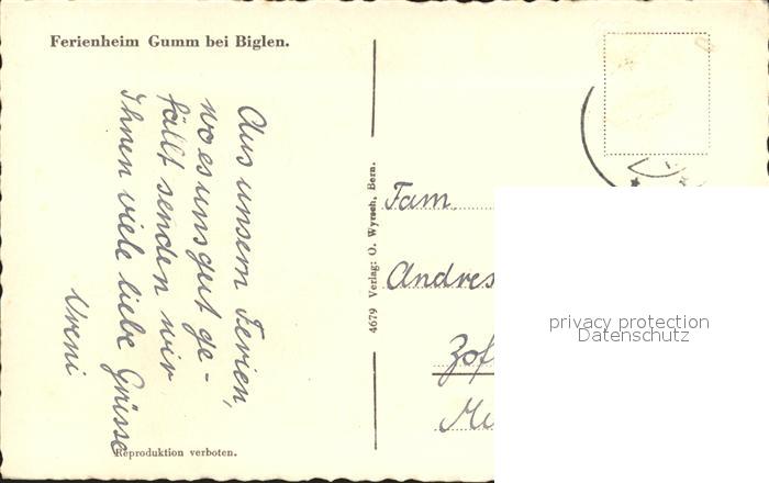 12055490 alte Postkarte Biglen Ferienhaus Gumm postalisch gelaufen Erhaltung siehe scans KatCode: 11470060180312