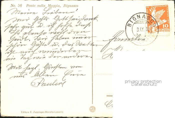 11739375 alte Postkarte Bignasco Ponte sulla Maggia postalisch gelaufen Erhaltung siehe scans KatCode: 11470210680384