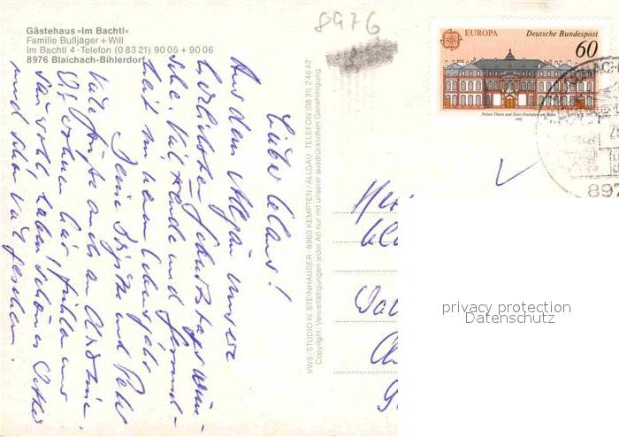 72774555 alte Postkarte Bihlerdorf Allgaeu Gaestehaus Im Bachtl postalisch gelaufen Erhaltung siehe scans [NatalD47] KatCode: 11110009780115