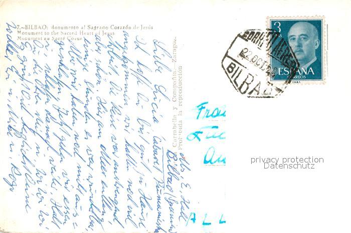 old postcard Bilbao Espana Monumento al Sagrado Corazon de Jesus postalisch gelaufen Erhaltung siehe scans [PaolaD17]