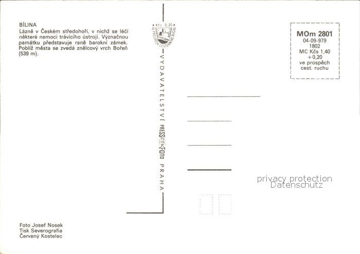 Bilina Bilin Tschechien Ceskem stredohori Vyznacnou pamatku prdstavuje Pobliz mesta se zveda znelcovy vrch Boren postalisch nicht gelaufen Erhaltung siehe scans