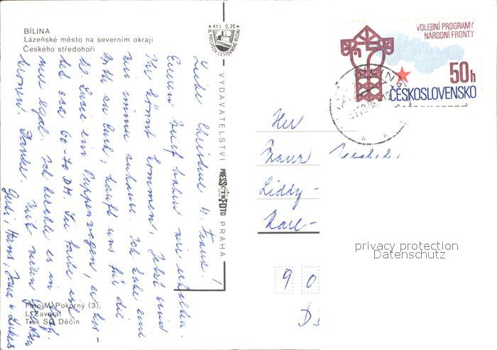 old postcard Bilina Bilin Tschechien Freibad Minigolf postalisch gelaufen Erhaltung siehe scans