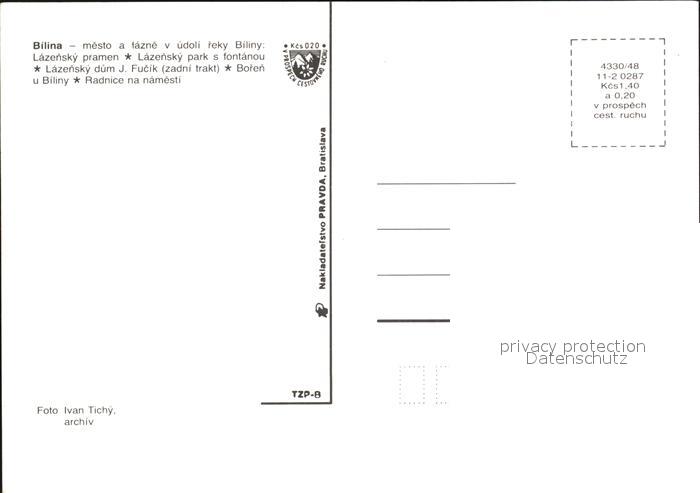 Bilina Bilin Tschechien Pramen Park s fontanou Dum J Fucik Boren u Bilini Radnice postalisch nicht gelaufen Erhaltung siehe scans