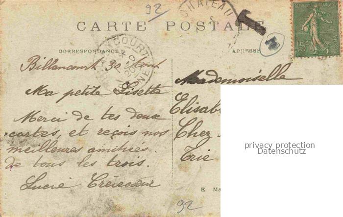 14113143 Billancourt 92-BOULOGNE-BILLANCOURT Une pensée de la ville vues d’ensemble fleur Kuenstlerkarte postalisch gelaufen Erhaltung siehe scans [FriedD77] carte postale Frie Katcode 11170092392012