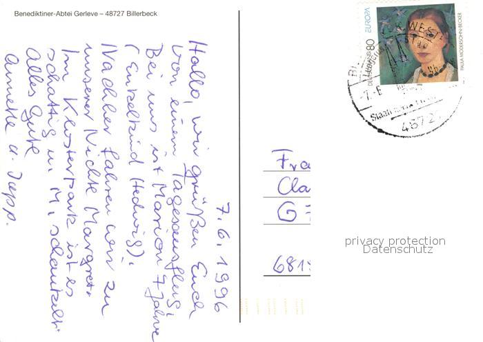 73010118 alte Postkarte Billerbeck Westfalen Benediktiner Abtei Gerleve postalisch gelaufen Erhaltung siehe scans [WerneD78] KatCode: 11110005558008
