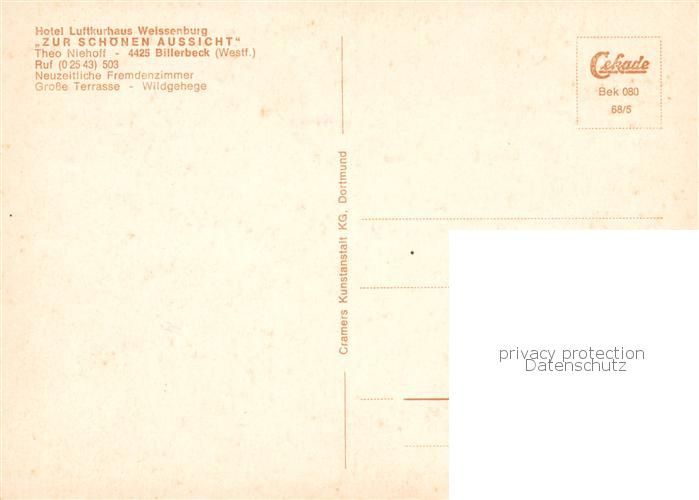 73865221 Billerbeck Westfalen Hotel Weissenburg Restaurant postalisch nicht gelaufen Erhaltung siehe scans [FriedD77] KatCode: 11110005558008