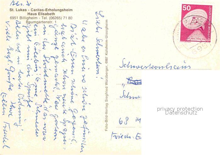 72724030 alte Postkarte Billigheim Baden Erholungsheim St. Luka postalisch gelaufen Erhaltung siehe scans [LiesaD40] KatCode: 11110008225009