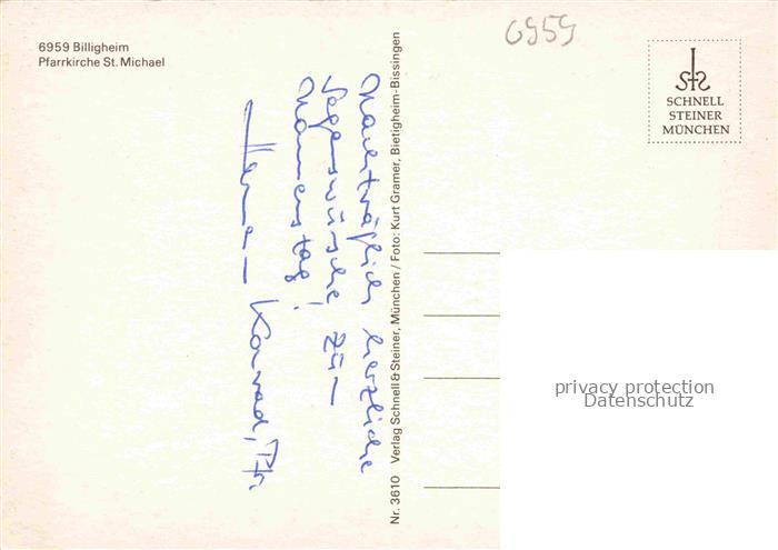 74048241 Billigheim Baden Neckar-Odenwald-Krei BW Pfarrkirche St. Michael postalisch nicht gelaufen Erhaltung siehe scans [FriedD77] KatCode: 11110008225009