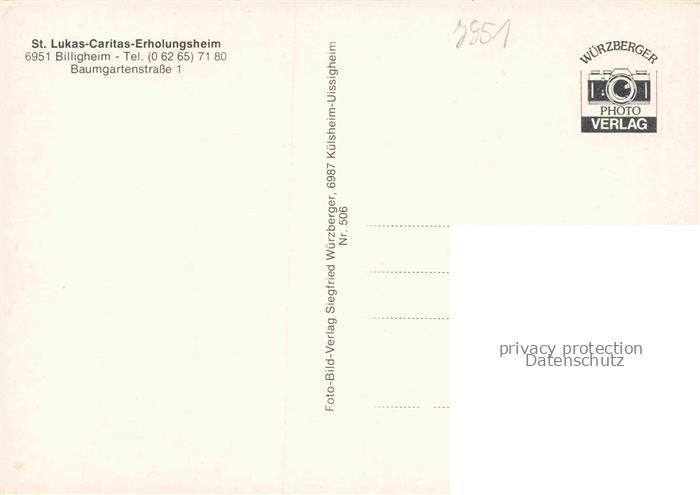 74050794 Billigheim Baden Neckar-Odenwald-Krei BW St Lukas Caritas Erholungsheim Park postalisch nicht gelaufen Erhaltung siehe scans [WerneD78] KatCode: 11110008225009