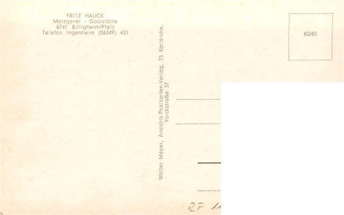 73877598 Billigheim-Ingenheim Gaststaette Fritz Hauck Hauptstrasse Marktplatz Obertor postalisch nicht gelaufen Erhaltung siehe scans [FriedD77] KatCode: 11110007337007