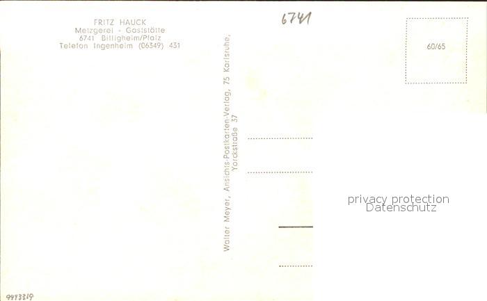31734414 Billigheim-Ingenheim Hauptstrasse Obertor Metzgerei Restaurant Fritz Hauck postalisch nicht gelaufen Erhaltung siehe scans KatCode: 11110007337007