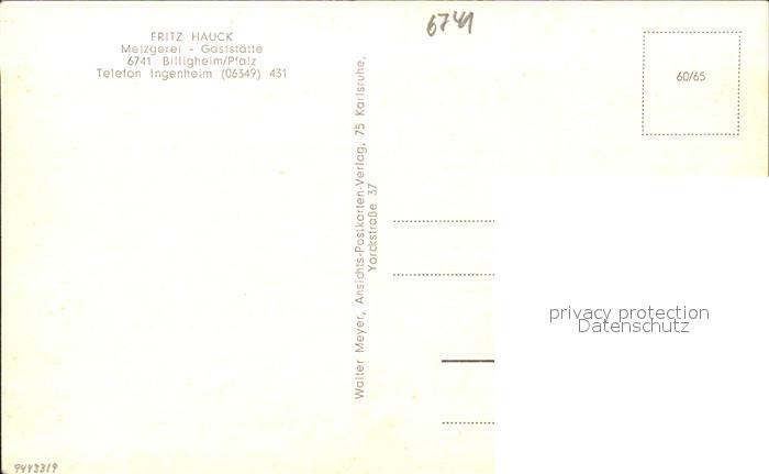 31734416 Billigheim-Ingenheim Hauptstrasse Obertor Metzgerei Restaurant Fritz Hauck postalisch nicht gelaufen Erhaltung siehe scans KatCode: 11110007337007