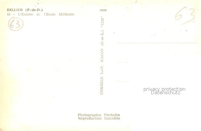 13572864 Billom Ecole Militaire postalisch nicht gelaufen Erhaltung siehe scans [PaolaD17] KatCode: 11170063263040
