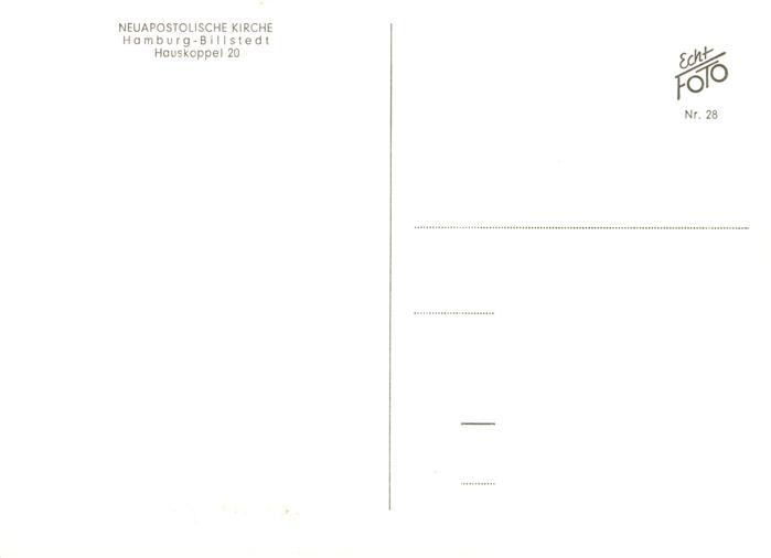 73874608 Billstedt Hamburg Neuapostolische Kirche postalisch nicht gelaufen Erhaltung siehe scans [FriedD77] KatCode: 11110002000000