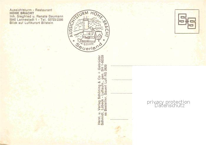 72798783 Bilstein Sauerland Aussichtsturm Restaurant Hohe Bracht Fliegeraufnahme postalisch nicht gelaufen Erhaltung siehe scans [FriedD77] KatCode: 11110005966020
