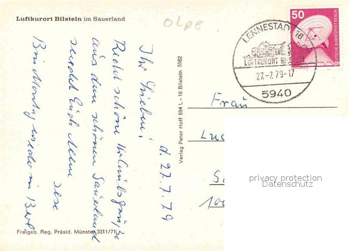 72907468 alte Postkarte Bilstein Sauerland Fliegeraufnahme postalisch gelaufen Erhaltung siehe scans [AndreD76] KatCode: 11110005966020