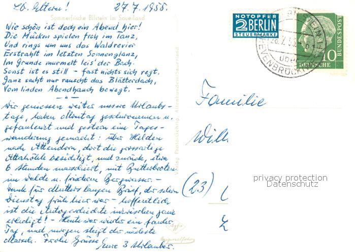 73103404 alte Postkarte Bilstein Sauerland Fliegeraufnahme postalisch gelaufen Erhaltung siehe scans [KathaD81] KatCode: 11110005966020