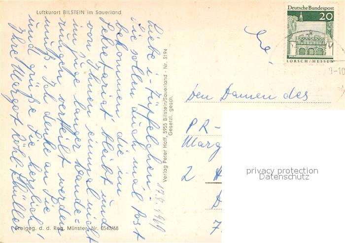 72991271 alte Postkarte Bilstein Sauerland Fliegeraufnahme postalisch gelaufen Erhaltung siehe scans [WerneD78] KatCode: 11110005966020