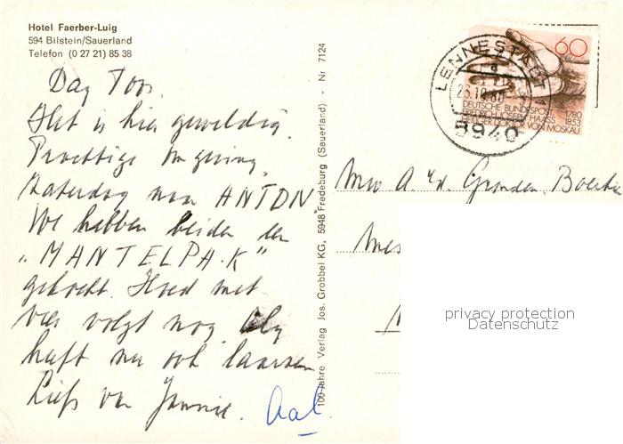 73868188 alte Postkarte Bilstein Sauerland Hotel Faerber-Luig Fachwerkhaus postalisch gelaufen Erhaltung siehe scans [FriedD77] KatCode: 11110005966020