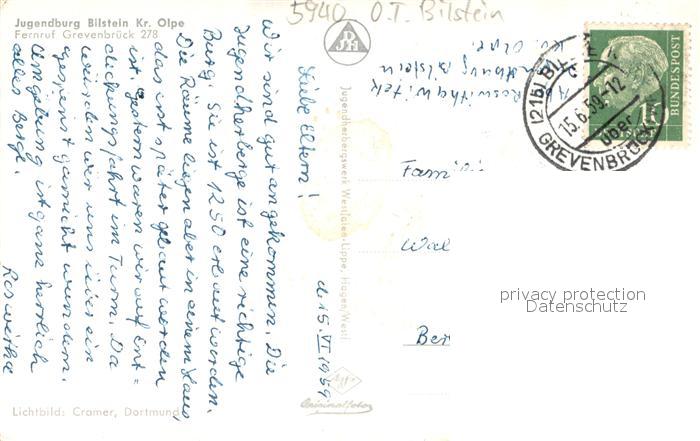 73700806 alte Postkarte Bilstein Sauerland Jugendburg postalisch gelaufen Erhaltung siehe scans [FriedD77] KatCode: 11110005966020