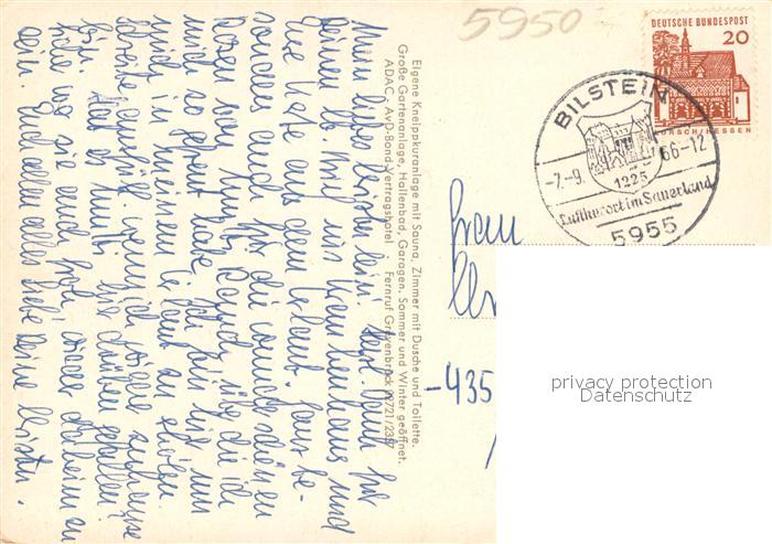 73662622 alte Postkarte Bilstein Sauerland Kurhotel Heller Aufenthaltsraum Terrasse Kaminzimmer Hallenbad postalisch gelaufen Erhaltung siehe scans [FriedD77] KatCode: 11110005966020
