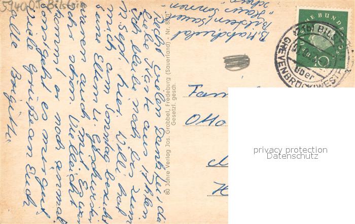 73700799 alte Postkarte Bilstein Sauerland Ortsansicht Luftkurort mit Kirche postalisch gelaufen Erhaltung siehe scans [FriedD77] KatCode: 11110005966020