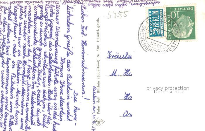 73692523 alte Postkarte Bilstein Sauerland Panorama Burg Veischedetal mit Freibad Hohe Bracht Bremketal mit Hoher Bracht postalisch gelaufen Erhaltung siehe scans [WerneD78] KatCode: 11110005966020