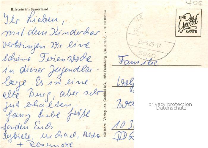 73670023 alte Postkarte Bilstein Sauerland Panorama Luftkurort mit Blick zum Schloss postalisch gelaufen Erhaltung siehe scans [FriedD77] KatCode: 11110005966020
