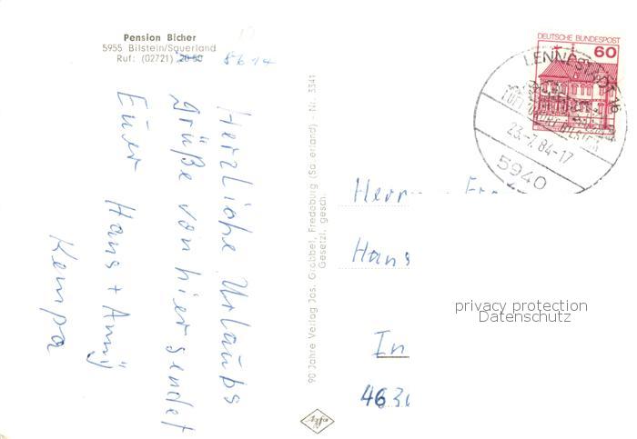 73852561 alte Postkarte Bilstein Sauerland Pension Bichler postalisch gelaufen Erhaltung siehe scans [WerneD78] KatCode: 11110005966020