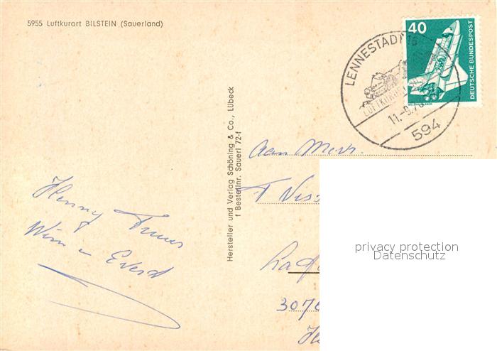 72935642 alte Postkarte Bilstein Sauerland Teilansicht Luftkurort mit Kirche postalisch gelaufen Erhaltung siehe scans [FriedD77] KatCode: 11110005966020