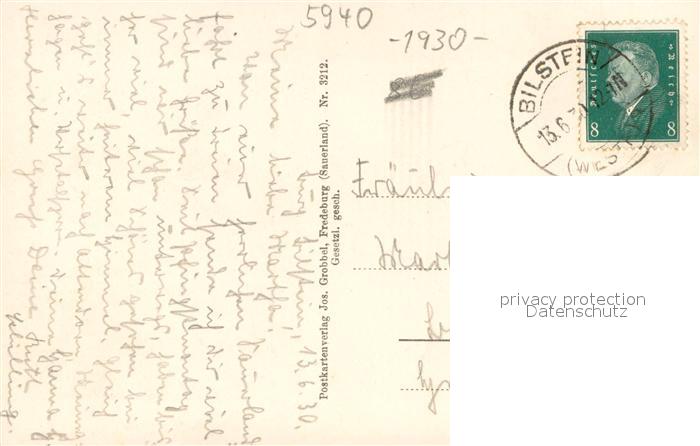 73700787 alte Postkarte Bilstein Sauerland Teilansicht Luftkurort mit Kirche postalisch gelaufen Erhaltung siehe scans [FriedD77] KatCode: 11110005966020