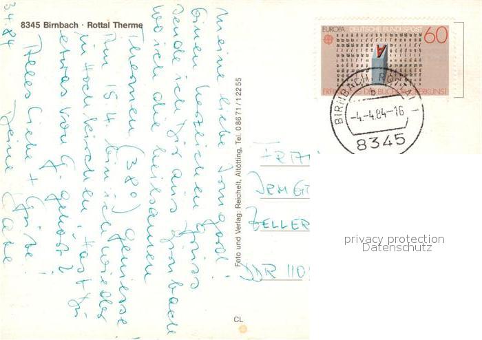 73173143 alte Postkarte Bimbach Rottal-Therme postalisch gelaufen Erhaltung siehe scans [LiesaD40] KatCode: 11110009675158
