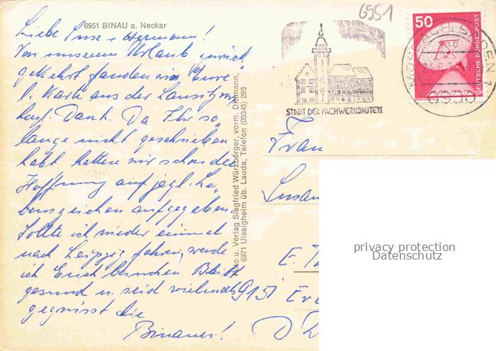 74047985 alte Postkarte Binau Panorama Blick ueber den Neckar postalisch gelaufen Erhaltung siehe scans [FriedD77] KatCode: 11110008225010