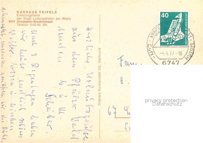 72663250 alte Postkarte Bindersbach Kurhaus Trifels postalisch gelaufen Erhaltung siehe scans [NatalD47] KatCode: 11110007337501